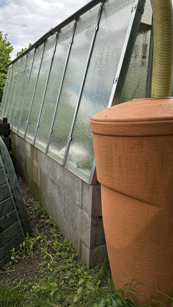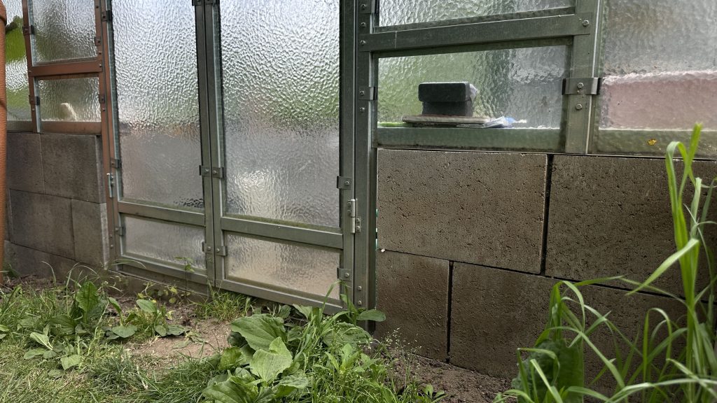 - Komplet spodek skleníku je ze ztraceného bednění – obvod z tvárnic o tloušťce 20 cm, vnitřní záhony z desítek.
